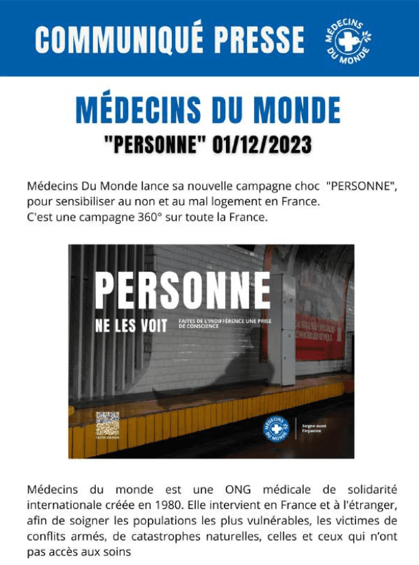 Médecins du Monde is a humanitarian organization that fights for access to healthcare for vulnerable and homeless populations.