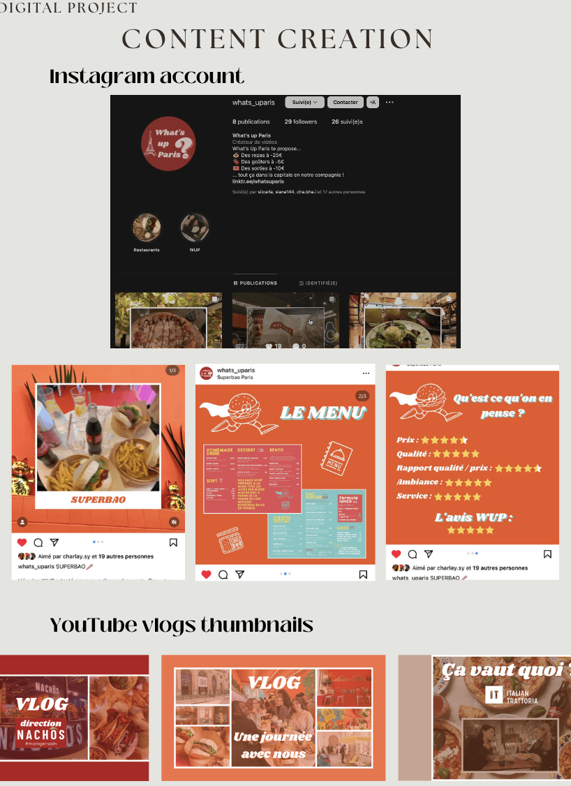 • SEO strategy - In-depth keyword research (“good plan Paris”, “students outgoing”, “cheap restaurants”), optimization of meta tags, alt descriptions, and backlinks.